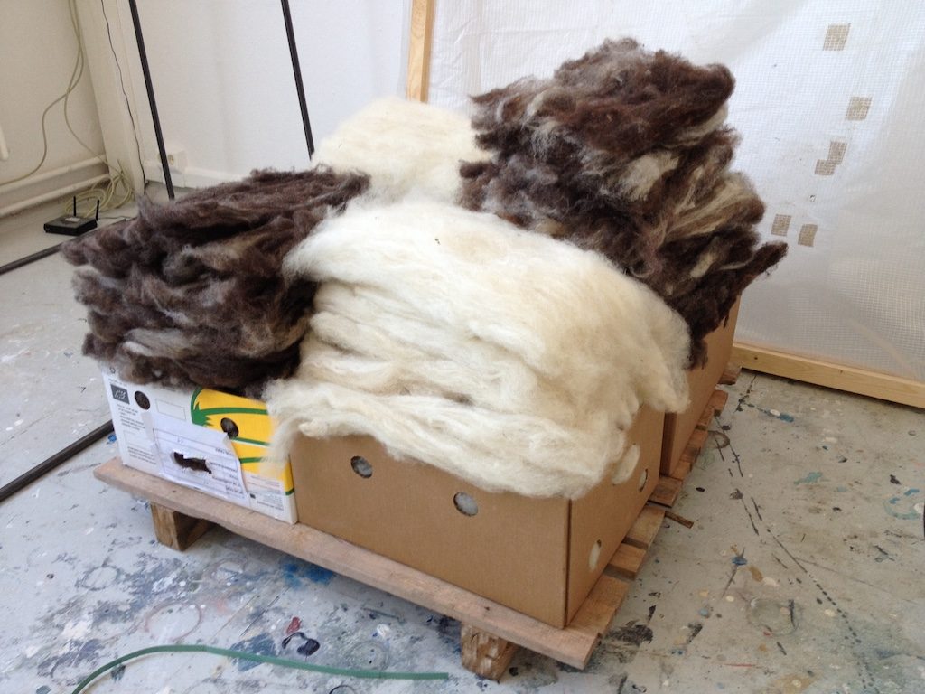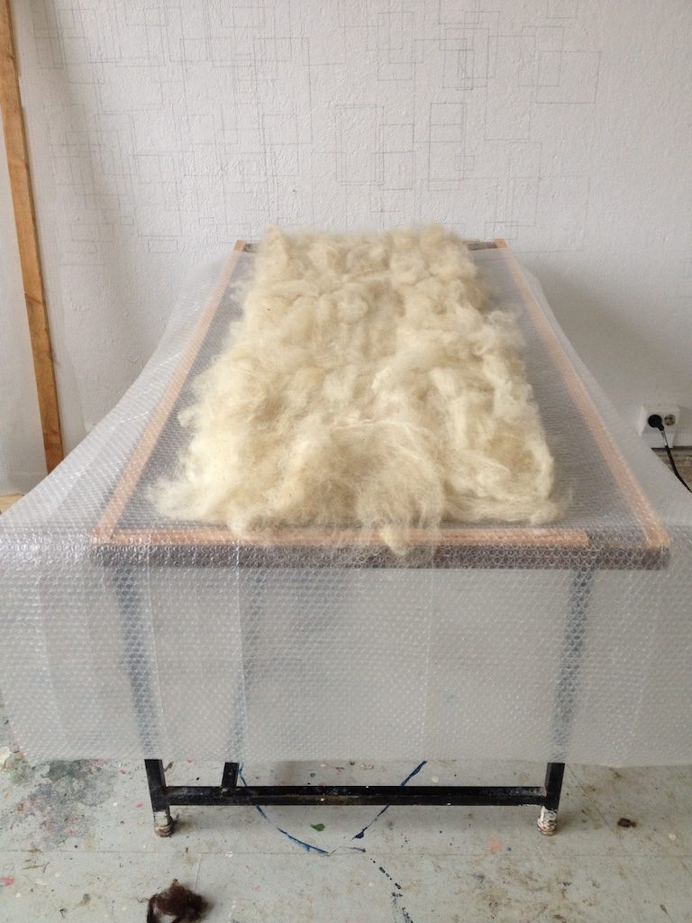 Zustand I: Installation aus Rohwolle, Wasser, Kardiermaschine, Seife
